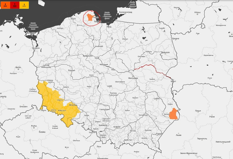 IMGW wydał też alerty hydrologiczne drugiego stopnia na terenie województwa pomorskiego, dotyczą one zlewni Redy.