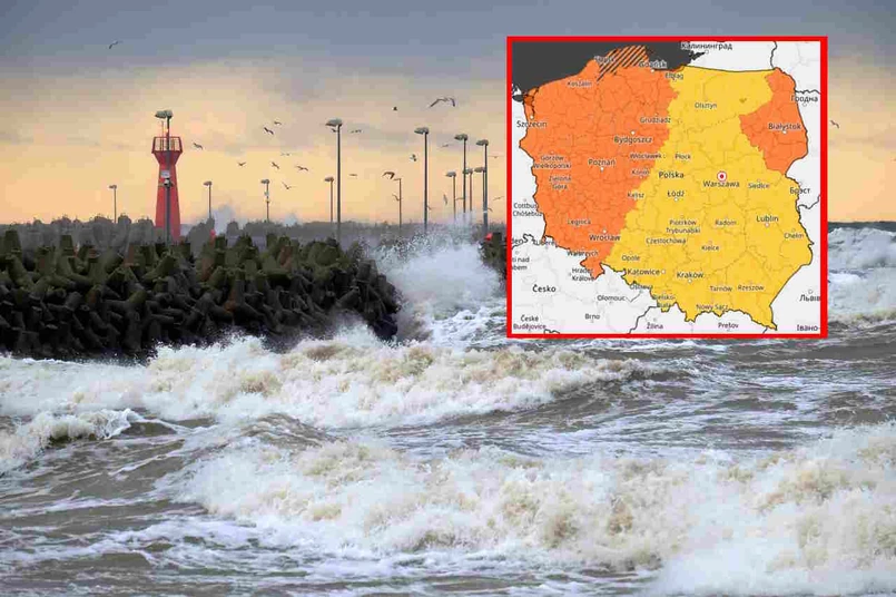 Alerty pierwszego stopnia (wiatr w porywach od 70 do 85 km/h) obejmują województwa: