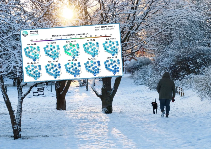W kotlinach karpackich możliwe są spadki do -11 st. C, na wschodzie do około -8 st. C, a na zachodzie do około -5 st. C. Takie warunki pogodowe mogą utrzymać się przynajmniej do połowy lutego.